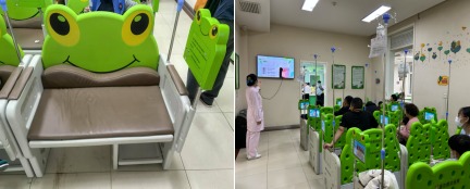 为贯彻落实医院“六个多”服务举措,科室在儿科门诊安装一体化卡通坐椅,缓解患儿由于医疗环境导致的焦虑恐惧情绪,视觉分散注意力,降低心理抗拒,减轻治疗痛觉感知,并缩短治疗时间,减轻家长负担;门诊输液间及病房包裹防撞条,增加患者安全防护,避免意外伤害,同时可以加强医护职业防护,保护设备与环境;优化科普新医保政策,更新科普内容,方便家属随时阅览,提升育儿知识;量身打造住院患儿宣传手册,方便家长闲暇时根据自身情况合理安排阅读时间,了解更多的育儿知识,减轻家长的焦虑情绪。