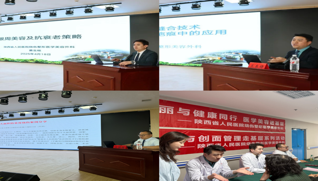 4月10日,慕生枝主任率队赴鄠邑区惠安医院,开展“技术赋能+健康普惠”活动。学术交流环节中,慕生枝主任以《注射美容技术风险全流程管理》为题,拆解临床操作核心要点;高文杰主治医师聚焦《2025医美新风向与科学养肤》,揭秘行业前沿趋势;伍航利主治医师针对《糖尿病足溃疡综合治疗策略》展开深度解读,为基层诊疗提供系统化解决方案。义诊现场同步升温,专家团队为多名群众提供“一对一”精准服务:从面部年轻化方案定制到顽固性皮肤问题诊疗,从个性化瘢痕修复到居家护理指导,以“三甲标准”回应民生关切。朱秀梅护士长通过一例复杂瘢痕修复案例,展现“技术+温度”的护理理念,患者感动坦言:“这样的专业和关怀,让我们对康复充满信心!”惠安医院李永魁主任评价:“活动架起了优质资源直达基层的桥梁,既惠民又强医。”
