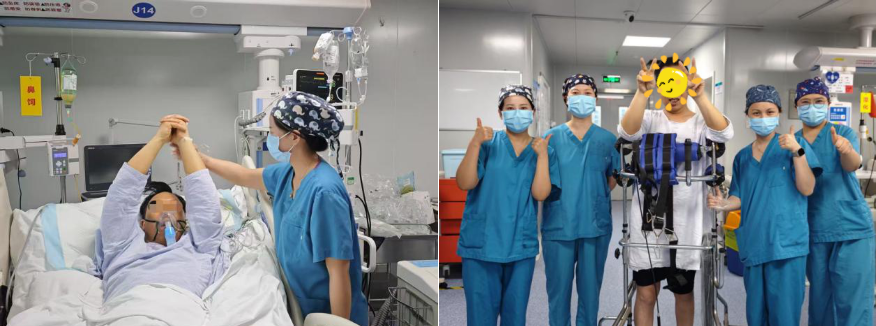患者脱离生命危险后,救治团队立即联系康复医学科联合护理团队制定个性化康复计划。清晨,护士为他肿胀的小腿做“压力按摩”;午后,康复师握着他的脚掌画圈,像小时候学走路那样;深夜,他一点点活动抬高病腿。从每日4次被动关节活动度训练,逐步过渡到床边坐立、站立及助力行走,最终实现渐进式抗阻训练、平衡训练及步态矫正。短短10天,患者从卧床不起恢复至6分钟独立步行320米。经过25天综合救治,患者凝血功能及肝肾指标显著改善,器官功能逐步恢复,顺利出院,未遗留后遗症。