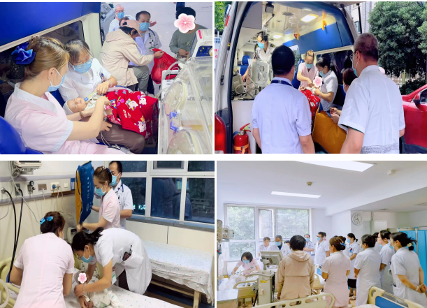 成功接诊患儿后,在转运途中,持续呼吸机辅助通气,保持患儿处于斜坡卧位,及时清理呼吸道分泌物,静脉通道维持用药,密切监测病情,通过微信群实时共享患儿生命体征数据,危重症专业团队实时给予远程指导,争分夺秒守护患儿转运安全。面对有听力障碍、无法言语的母亲,医护团队化身“临时妈妈”,在颠簸的转运途中全程怀抱脆弱的生命,通过手语交流及书面沟通,用专业的知识抚平家属焦虑的心情。在新生儿科、院前急救、基层医疗服务部的大力支持下,患儿安全、平稳地实现了跨区域远程转运。