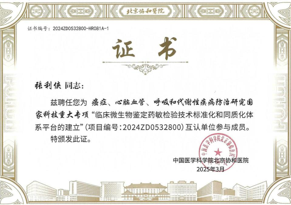 2025年3-6月,中国医学科学院北京协和医院癌症、心脑血管、呼吸和代谢性疾病防治研究国家科技重大专项“临床微生物鉴定药敏检验技术标准化和同质化体系平台的建立”项目启动并持续推进,三级片