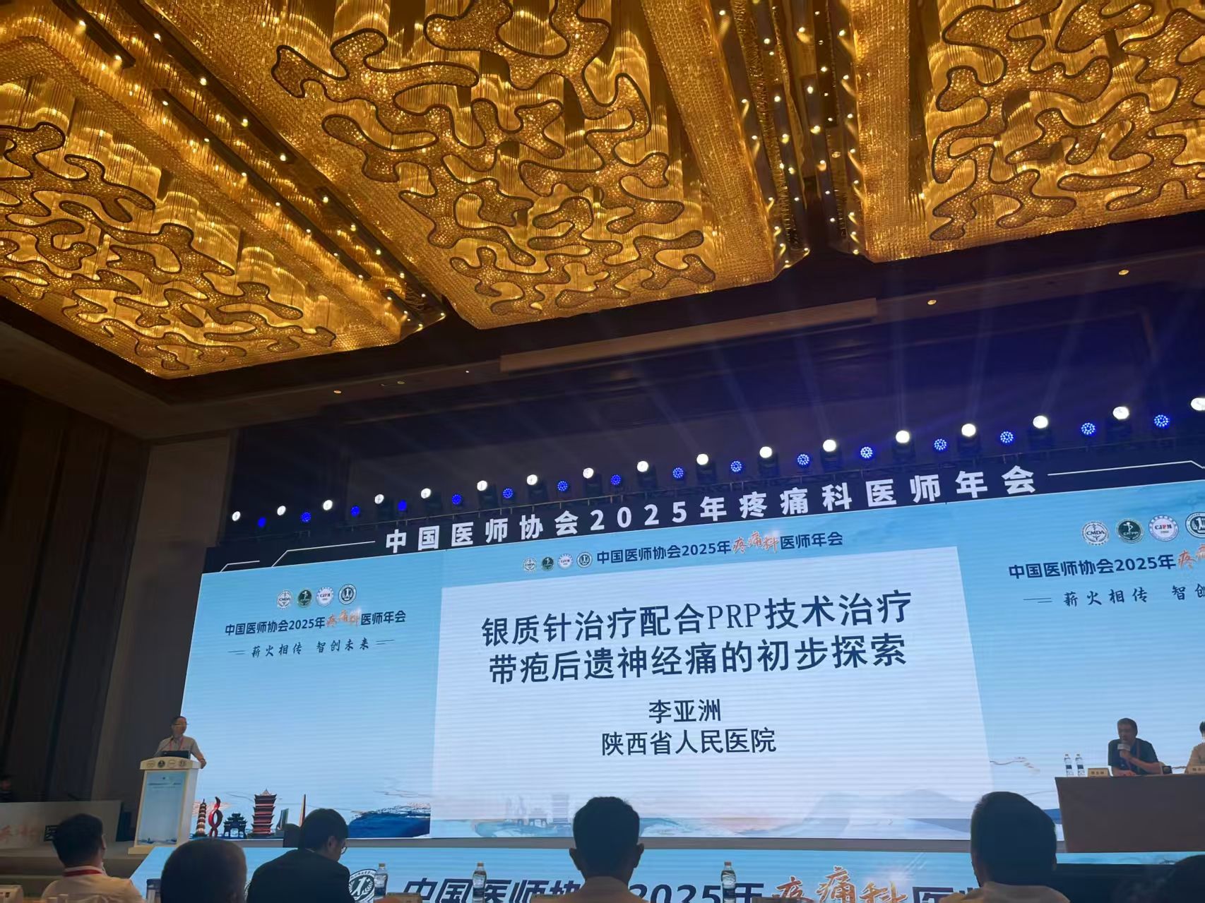 7月18日-7月20日,由中国医师协会主办的2025年疼痛科医师年会在安徽合肥召开。本次大会以“薪火相传,智创未来”为主题,聚焦疼痛医学前沿与发展趋势展开深入探讨,肿瘤科安宁疗护病区李亚洲主任医师代表陕西参会,并在主会场作题为《银质针配合PRP在治疗带疱后遗神经痛的临床初探》的大会报告,为顽固性慢性疼痛治疗提出了创新性诊疗策略,引发了与会专家热烈讨论。这不仅是三级片 在疼痛专业领域的一次精彩亮相,更标志着三级片 该项诊疗技术得到了业内的高度肯定。
