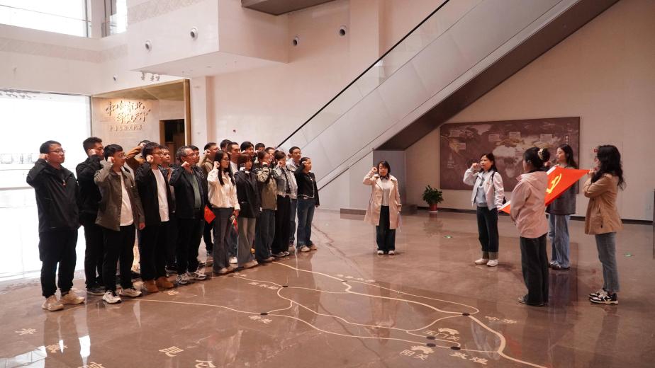 在博物馆四楼大厅,医学影像诊断中心主任、MRI党支部书记雷晓燕带领26名党员重温入党誓词。随后,党员通过沉浸式沙盘了解了秦岭4亿年的地质演变及其在中国自然与人文格局中的重要意义。