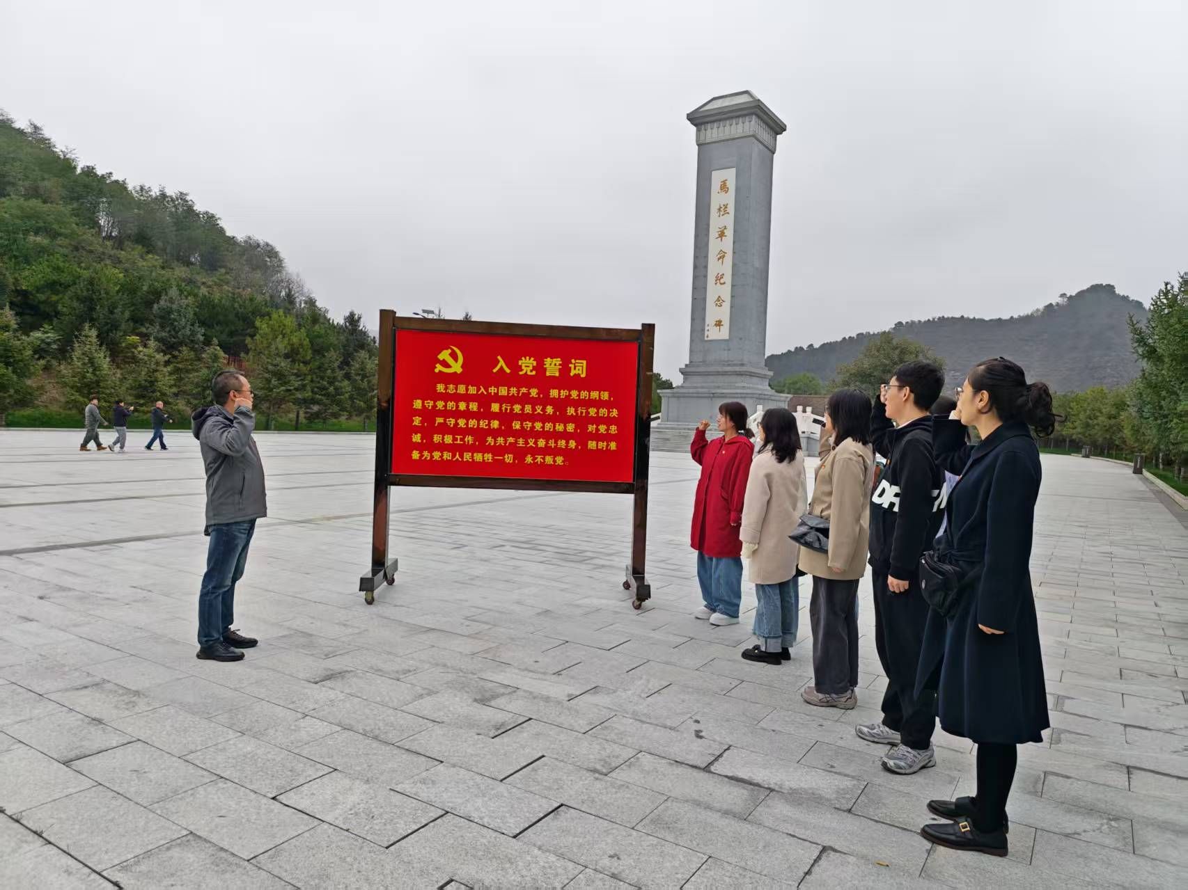 活动当日,全体党员怀着崇敬之心抵达旧址。作为陕甘边革命根据地重要组成部分,这里曾是中共关中地委、关中军分区机关所在地。在讲解员引导下,大家参观马栏革命纪念馆,馆内300余件实物、500余张历史照片及文字史料,生动还原20世纪30至40年代,习仲勋、汪锋等老一辈革命家领导军民斗争、建设抗日根据地的艰辛历程。党员们驻足凝视文物,聆听背后故事,深刻体会革命胜利的不易。 活动核心环节为马栏革命纪念碑前的“重温入党誓词”仪式,全体党员举拳宣誓,既是对入党初心的叩问,也是对践行使命的承诺。