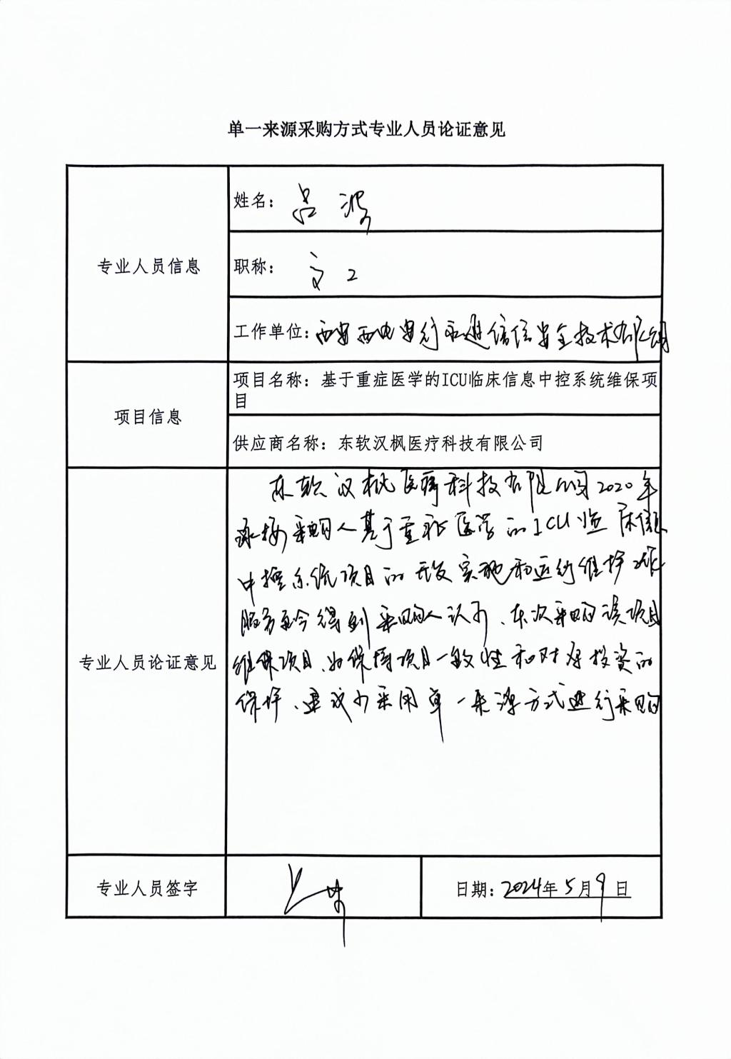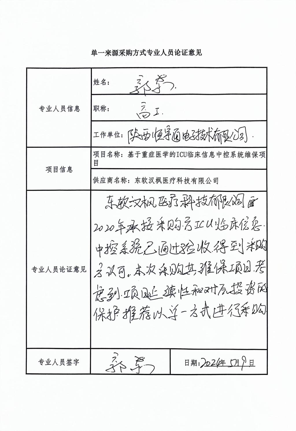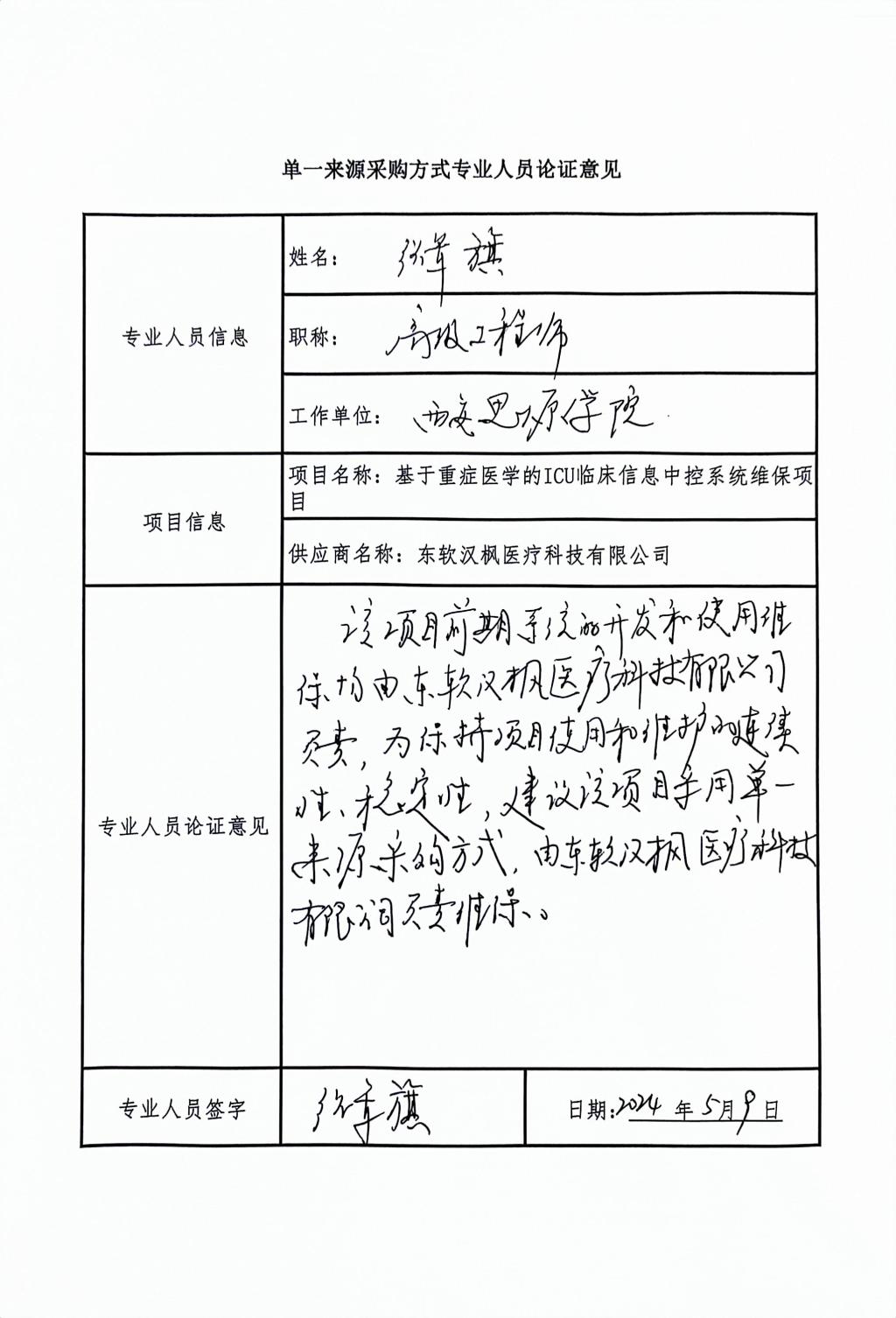 基于重症医学的ICU临床信息中控系统维保,只能从唯一供应商处采购。