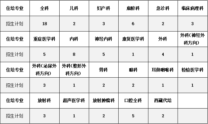 2025年各住培专业第一批次招收名额(含基地人)如下:
