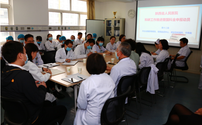 举办“2021年度国科金申报动员暨科研工作推进会”后,在宋张骏院长具体指导下,在院党委大力支持下,张玉莲副院长带领科研处全体人员在全院分区域开展12场拉网式科研工作动员及推进会,各科室、各部门正副主任、护士长、博硕士、业务骨干参加。彭宁副处长主持会议。