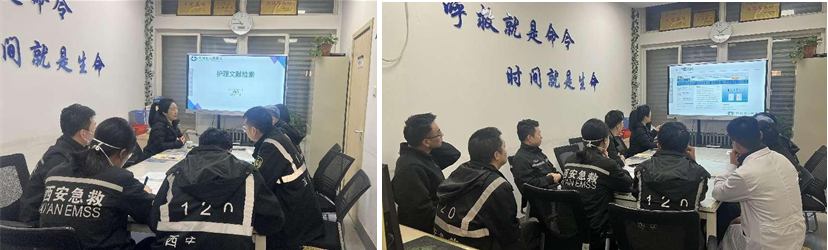 首先针对科研现状进行讨论分析并安排本年度培训计划,将采取“请进来、走出去、带回来”的方式逐步改善院前科研基础薄弱问题。护理研究生郑芸辉主管护师讲解了护理文献检索方法,重点从关键词和主题词、文献检索途径及方法、常用医学文献数据库进行分享,指出要充分利用医院图书馆的资源,下载文献,多读多思考,发现科研创新点。培训后大家积极提问探讨,讨论各自在科研方面的困惑,学习氛围浓厚。