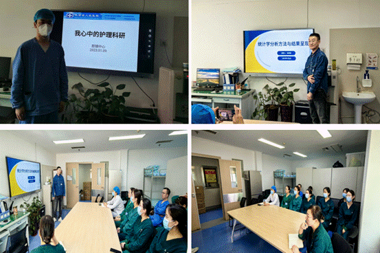 腔镜中心在对2022年科研工作总结的基础上,开展“我心中的护理科研”沙龙讨论,大家就各自对科研的理解、准备的研究方向、困惑进行讨论,对收集到的困惑进行梳理。同时邀请护理部鱼星锋博士进行题为《统计学分析方法与结果呈现》讲座,重点讲解了计数资料和计量资料的分析方法、如何选择统计工具、以及统计结果的解读和呈现,授课内容丰富而实用。