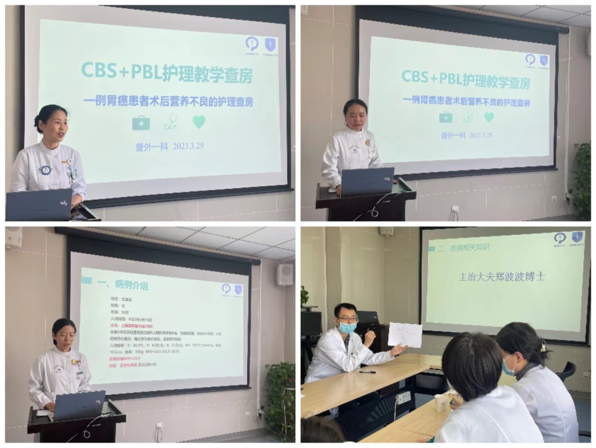 活动中,责任护士成娟丽汇报患者病情,主管医生郑波波博士图文并茂地讲解了手术方式及疾病相关知识,护理实习生刘春丽熟练地在床旁进行专科查体。在教学环节,带教组长张晓娟以病例资料为切入点,引导学生从寻找护理问题出发,采用小组合作的方式共同为该患者制定护理计划、护理措施,最终实现了护理目标。