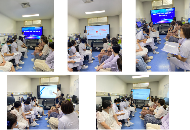 曹维娜护士长对医院下发的《2023年“安全生产月”活动安排》《进一步加强安全用药管理举措》文件进行详细解读,对科室制定的活动计划进行具体安排。杨超护士分享了用药错误案例,大家逐个对“用药错误不良事件典型案例”进行分析讨论,深度剖析科室用药风险隐患,梳理管理漏洞和流程弊端,进一步完善优化管理制度,确保患者用药安全。