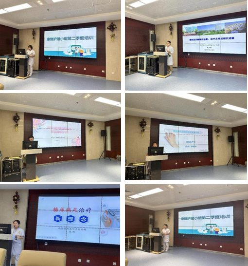 会上,康复医学科蒋永莉博士以《慢性意识障碍的诊断、治疗及预后研究进展》为题,从意识的概念及解剖环路、意识障碍的定义及类型、评估及预后、促醒治疗做了系统培训。神经内一科李娜主管护师、康复医学科陈晓婷主管护师、烧伤整形医学美容外科康瑛主管护师分别就《阿尔兹海默病家庭智能康复训练》《神经源性直肠患者的康复护理》《糖尿病足治疗新理念》等做了精彩讲述,现场学习氛围热烈,大家的积极性很高,组长黄亚川、副组长曹维娜分别对各项内容做了精彩点评。