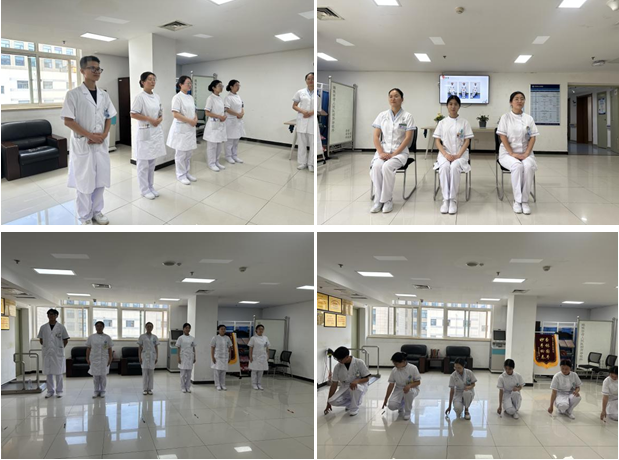 培训首先通过PPT讲解,让实习生了解了护士礼仪的系统理论知识。随后李静护士进行现场示教,强调每一个动作的重点,加深学生的印象。在学生进行集体演练时,针对学生的站姿、行姿、坐姿、蹲姿、仪容仪表、言语标准、推治疗车、持病历夹及伴随指引等进行了逐项指导培训。