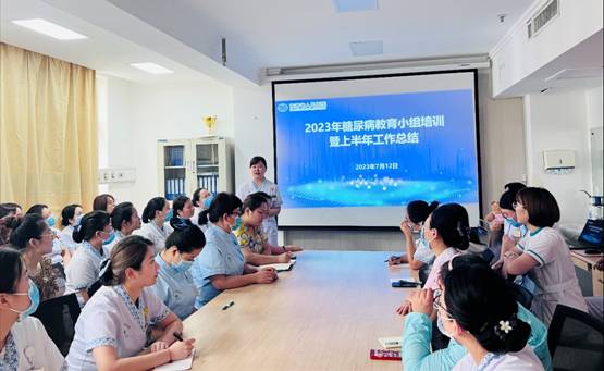 为提高全院护理人员糖尿病专科知识和临床技能,推动院内血糖同质化管理,确保护理质量安全,7月12日下午,糖尿病护理小组举办培训活动暨2023年上半年工作总结会。会议由糖尿病教育小组副组长杨丹主持,全院60余名小组成员参加。