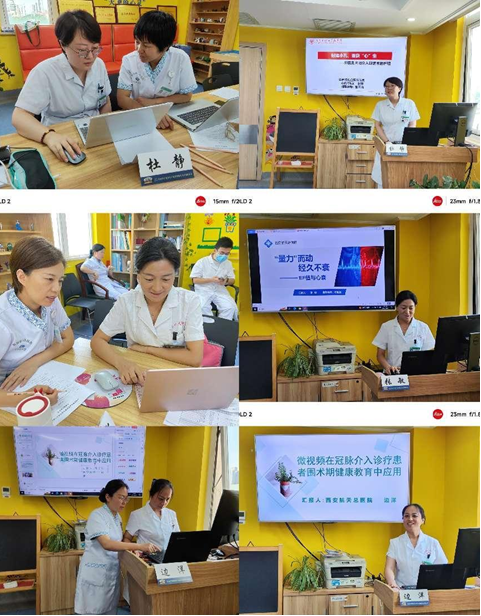 第二部分:《精品讲课“心”展现》。科研组长张静涛、重症组长马雅雅、教学组长张青青一对一对三位学员小讲课课件进行现场指导。三位学员结合学习内容和自己专科特点,从护理科研、延伸服务、专科护理等方面进行充分展示,得到评委老师一致好评。