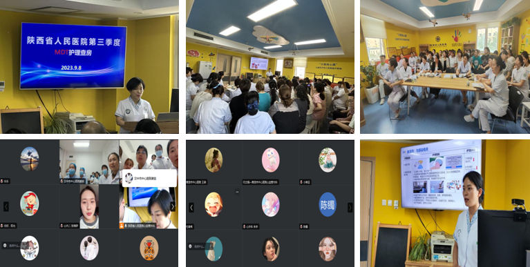 9月8日下午,护理部组织对心血管外科一例老年冠脉搭桥术后合并消化道出血患者进行医护一体化多学科护理查房。邀请陕西省护理学会心血管专业委员会邵继风主委、浙江医院心脏康复专家朱利月主任线上指导,院内院外医护专家、医联体护理同仁、陕西省心血管专科护士学员、规培生、实习生100余人线上、线下参与。