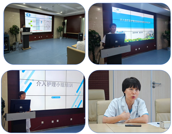 神经内一科二病区彪红艳讲授了《脑静脉窦狭窄的介入治疗》相关知识,延伸了脑血管介入诊疗目前国内外的前沿进展及三级片 脑血管介入的发展情况。急诊外科寇文科讲解了《介入诊疗及护理在急诊创伤救治中的应用》,使大家了解了多发脏器破裂出血在救治中通过与时间赛跑,运用介入治疗的方法,为后续的治疗争取了时机,在急诊创伤救治中发挥了举足轻重的作用,极大地保障了患者的生命安全。