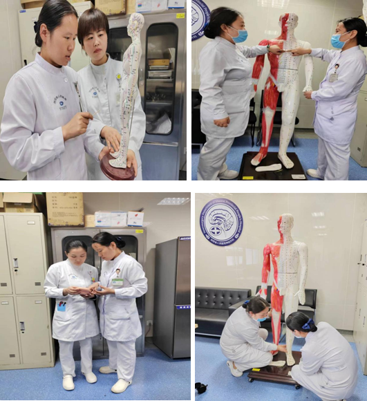 此次考核依照中医适宜技术操作规范,由赵晓君护士长,中医组组长张雪艳、副组长杨楠担任评委,共25人参与考核。操作使用模拟人,直观、形象地了解科室常用穴位的定位,各项中医技术的作用及操作方法、注意事项,提高了全体护理人员对中医技术的认知,并及时纠正在运用中所存在的不足。