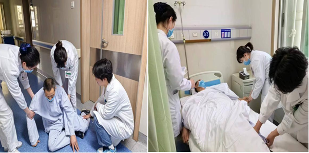 通过此次演练对全科护理人员进行了系统化培训,现场考核“跌倒高危人群”“预防跌倒十知道”和“下床三部曲”等知识,做到了人人掌握、人人过关。同时科室张贴“一次性拖鞋零容忍”海报及倡议书、高危患者床头贴警示标识,多措并举提升患者及陪人的安全意识。肛肠外科护理团队将继续着眼于患者安全,对跌倒/坠床等安全问题进行科学有效管理,保障患者安全。