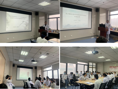 王萍副主任代表科室对两位老师的授课表示欢迎及感谢。李静副主任、李婷护士长结合临床典型案例,重点从穴位贴敷、耳穴疗法在腹泻、便秘、失眠等消化科常见病症中的应用进行讲解,并根据全院开展现状及经验进行分享。大家积极互动交流,现场体验了相关技术操作。