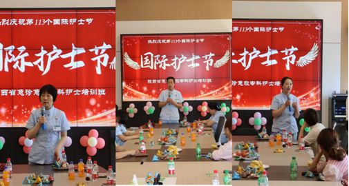 基地负责人吴小花老师、苏晓丽总护士长以及急救中心的多位护士长参加此次护士节庆祝活动,路丽华、王芬两名学员主持。