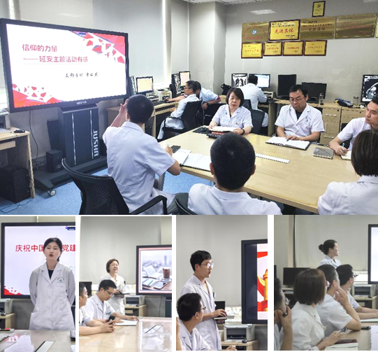 活动中,支部书记雷晓燕做《信仰的力量——延安主题活动有感》主题党课,围绕什么是信仰、信仰的作用、信仰的意义以及如何坚持正确的信仰四个方面展开,讲述了红军历经万里长征到达延安的英雄壮举,使大家深刻认识到延安精神蕴含的丰富内涵。青年党员代表高妮做《领悟红色精神,立足医者岗位》主题演讲。她从《红星照耀中国》一书展开,结合自身工作岗位,讲述了医务工作者的责任,表示作为青年党员,要树立良好医德医风,把患者安危放在首位,用精准的医学影像图像协助临床医生,为患者的健康提供最大的帮助。