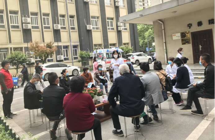 上午10点,宁养院门口的空地上摆好了十几个凳子,座位呈U型,每个座位间隔1米。今天组织的患者家属活动是新冠肺炎后的第一次活动。共有10多名患者家属参加。