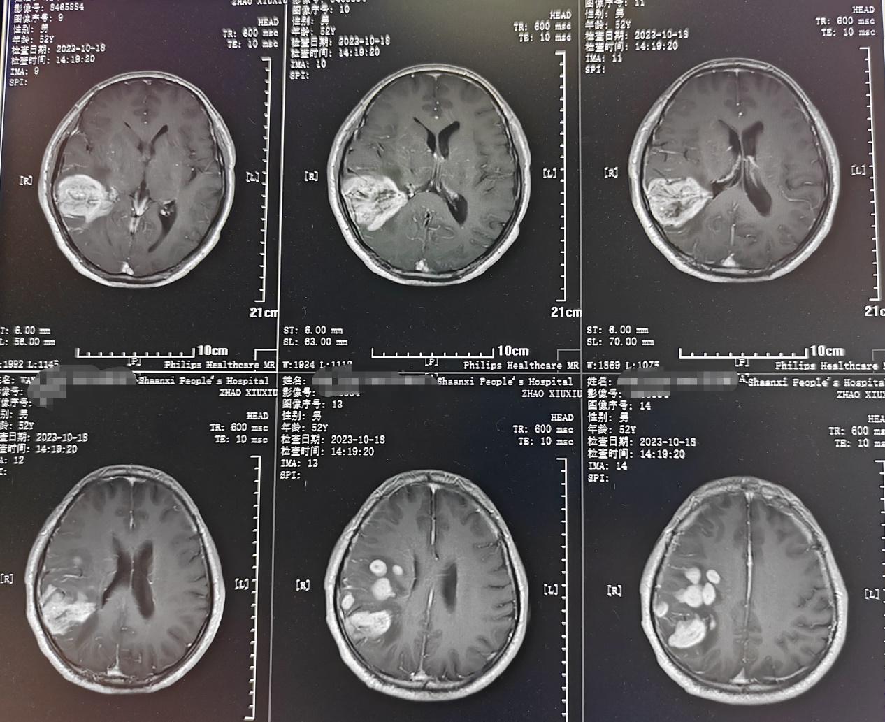 首例颅内功能区多发肿瘤切除术,患者满意。