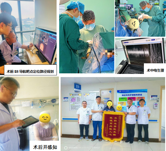 神经外科就诊。神经外科功能团队为患者进行全面、详细的检查和评估,经过帕金森MDT团队的充分讨论,并与家属充分沟通,患者家属决定植入新一代脑起搏器Percept™ PC和SenSight™方向性电极系统,改善患者的症状和提高生活质量。经过充分术前准备和在S8导航下反复推演手术手术路径、手术靶点、手术计划,2024年8月16日在麻醉科和手术室的大力配合下手术圆满完成。患者术后第四天,顺利开机可感知系统,术后6天康复出院,后续团队将根据患者的情况实施个性化的程控治疗措施,帮助患者改善更好。