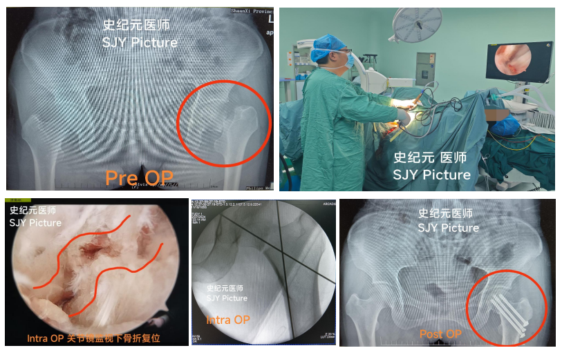 首例髋关节镜监视下股骨颈骨折闭合复位内固定手术。