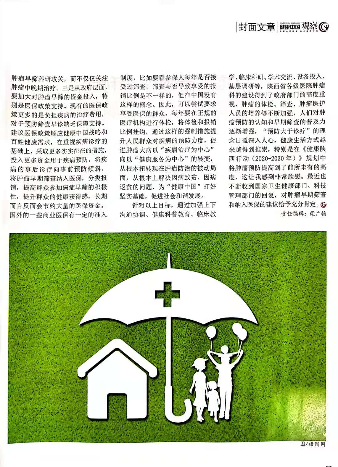宋张骏代表在文中,关于通过对肿瘤预防和早筛纳入医保这一措施,促使人们高度重视早期预防,进而实现肿瘤早发现、早诊断、早治疗、早康复的真知灼见,以及大力宣传并推广“预防大于治疗”并根植于社会的理念,是一名肿瘤治疗专家几十年来在实践中与上万名肿瘤患者诊治接触过程中切身的体会和经验结晶,也是健康中国建设的智慧和宝贵经验。