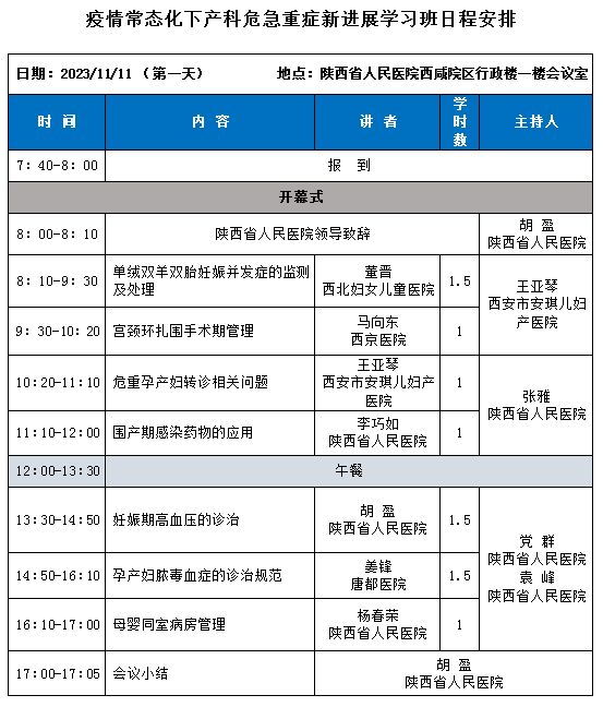 将于2023年11月11日至12日,举办“疫情常态化下产科危急重症新进展学习班”,届时将邀请省内外业界知名专家现场授课。学习结束后,考勤及考试合格者将授予省级继续医学教育学分6分。现将具体事宜通知如下: