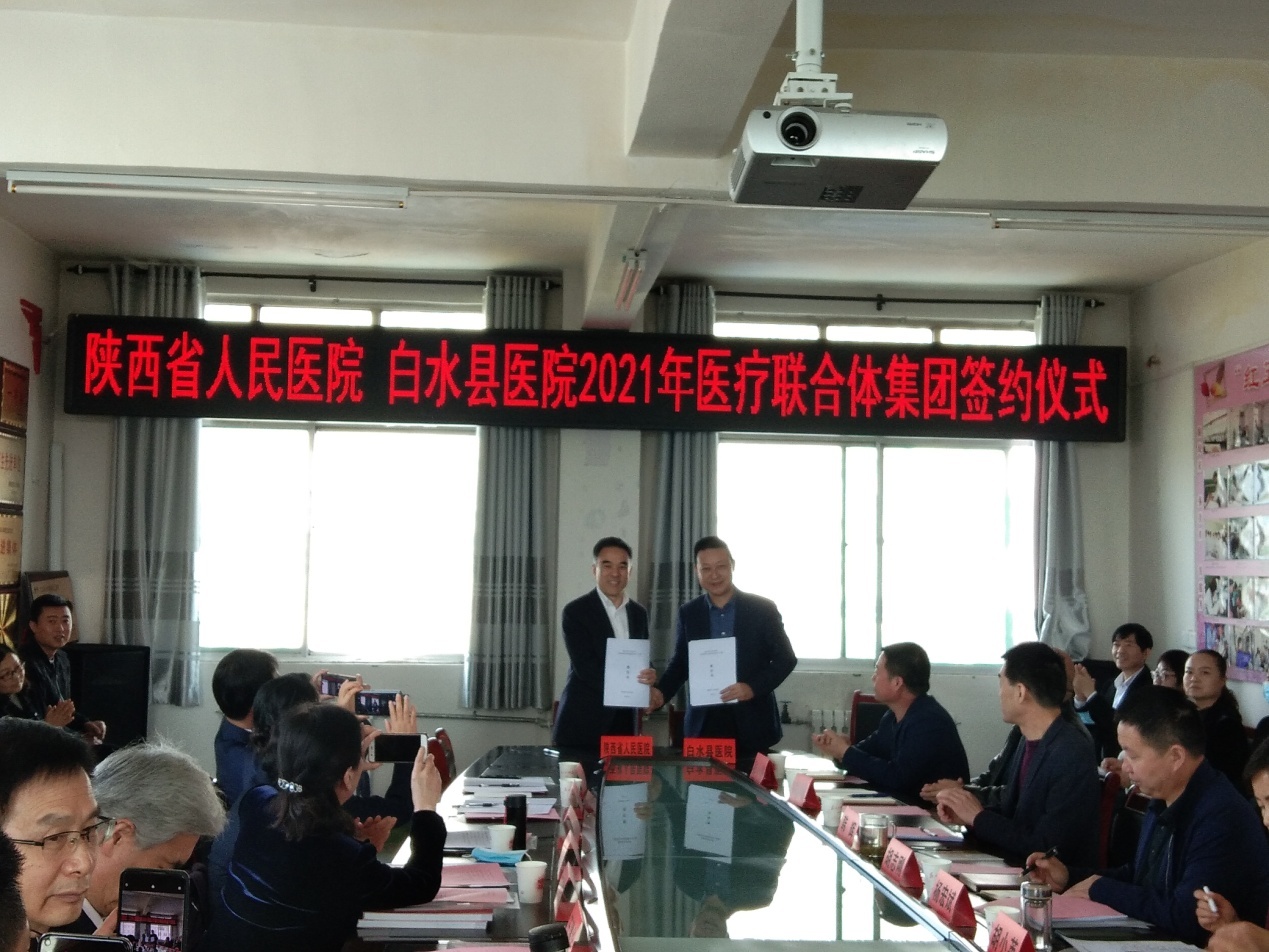 2021年4月14日,王建华副院长带领基层医疗服务部、妇科、肝胆外科、血液科、B超室和内分泌科等科室主任专家一行9人,走进白水县医院,组织开展座谈交流、查房指导和疑难危重症会诊等专家走基层迎接建党100周年活动。