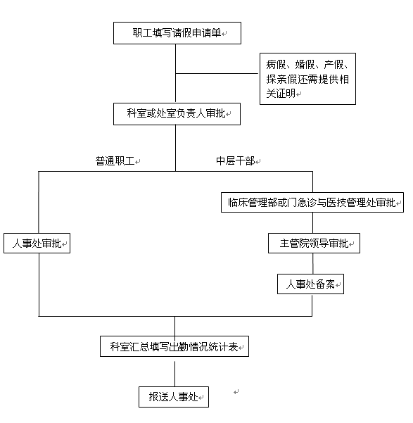 根据《三级片 考勤管理制度》规定,符合请或休假条件的职工,于所在科室、处室领取请假申请单,并按照以下流程办理。