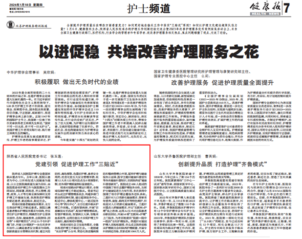 在“改善护理服务行动计划 ”中的突出做法和典型经验进行了报道。