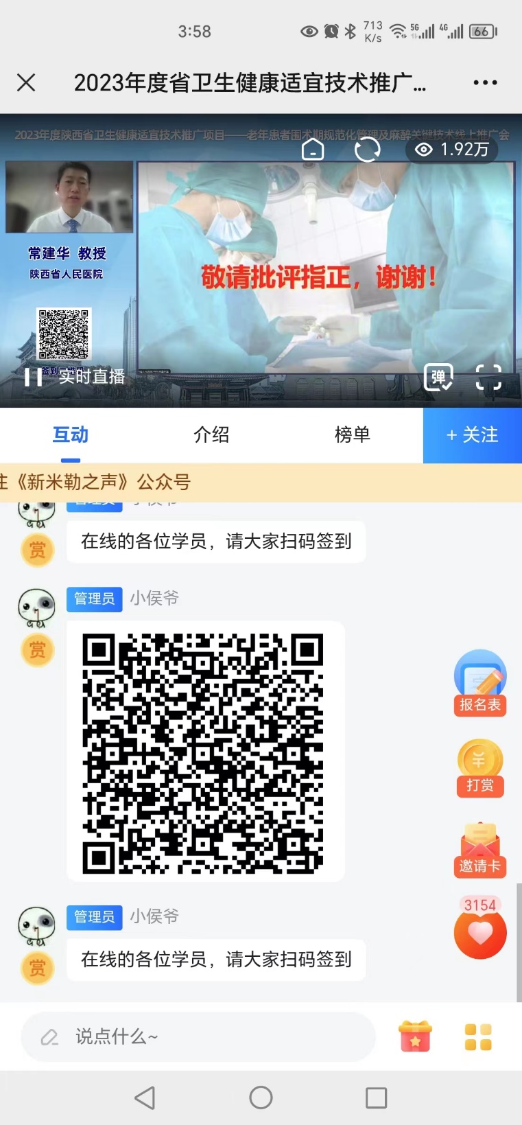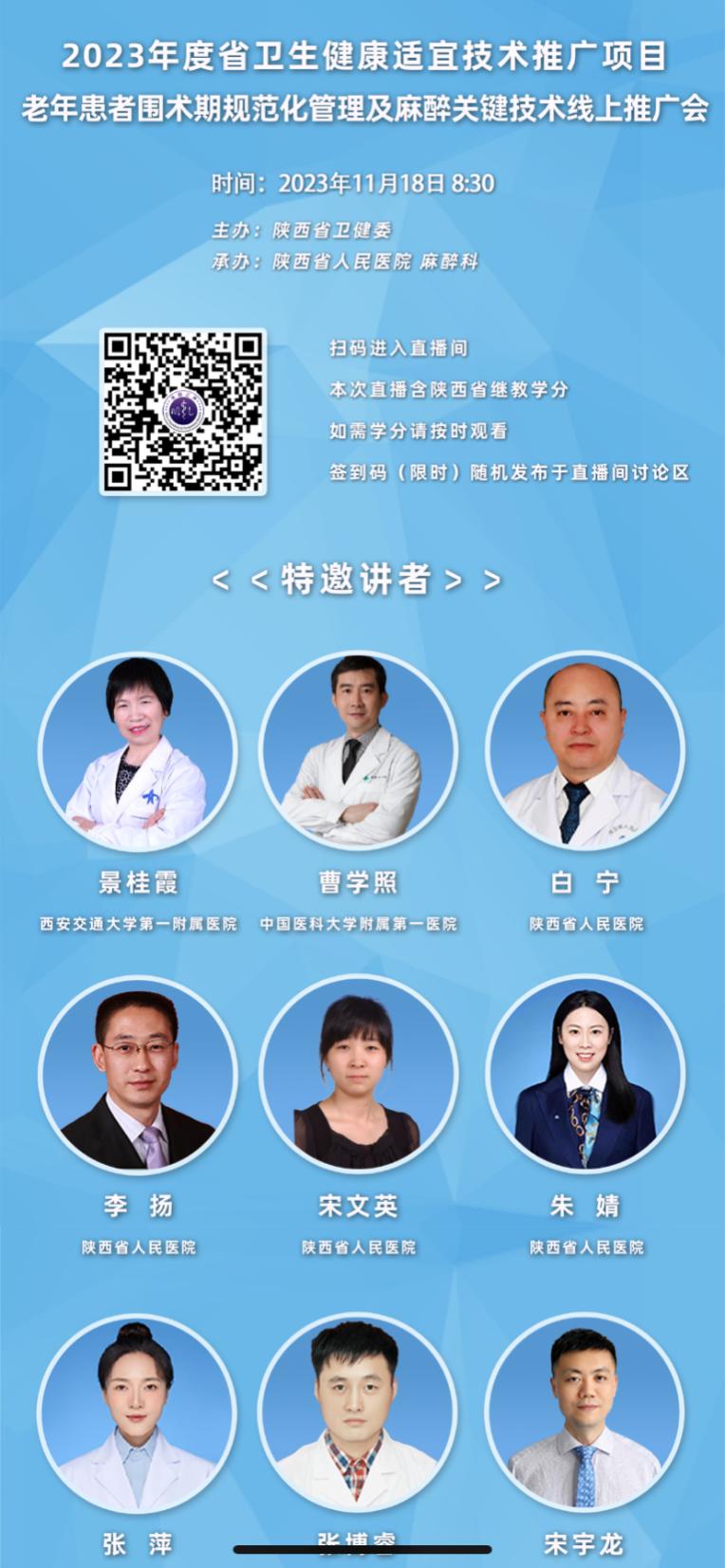 11月18日,由陕西省卫健委主办、三级片 麻醉科承办的”老年患者围术期规范化管理及麻醉关键技术”线上推广会成功举行,本次会议通过米勒之声麻醉平台在线直播,1.92万人次在线观看。