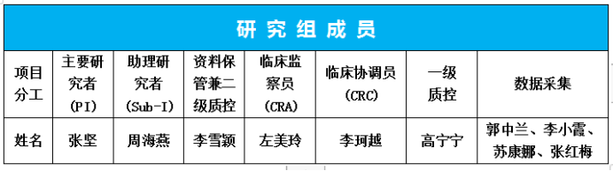 前期在科研处指导协调下,研究组全员通过国家食药监局GCP培训认证,项目通过伦理答辩,形成以科主任张坚主任医师为主要研究者的研究小组,于2020年1月顺利召开项目启动会。项目进行以来,研究团队以高度责任心和严谨的态度严格按照方案和流程进行,确保获得客观,科学的研究数据。