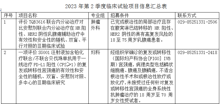 为爱而“试”,同行共“研”系列报道(二) ——2023年第2季度临床试验项目招募汇总