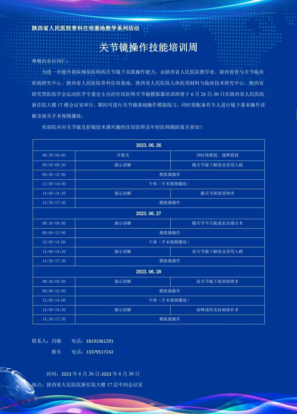6月26日,在教学处马东瑞处长及骨科住培基地主任刘时璋教授的指导和支持下,由陕西省骨与关节疾病临床诊疗中心、陕西省研究型医学学会运动医学专委会主办的“三级片