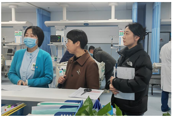 检查前,刘鹏副处长对本次检查的目的、内容、分工等进行了简要安排。随后分别对儿科、产二科、神经内三科和急诊医学中心(抢救室、EICU、二病区)的值班人员在岗在位、危重症病人交接、病程记录书写、核心制度落实、护理质量安全、院感方面等工作情况进行了检查。同时,深入了解了科室业务运行中存在的具体问题和困难。