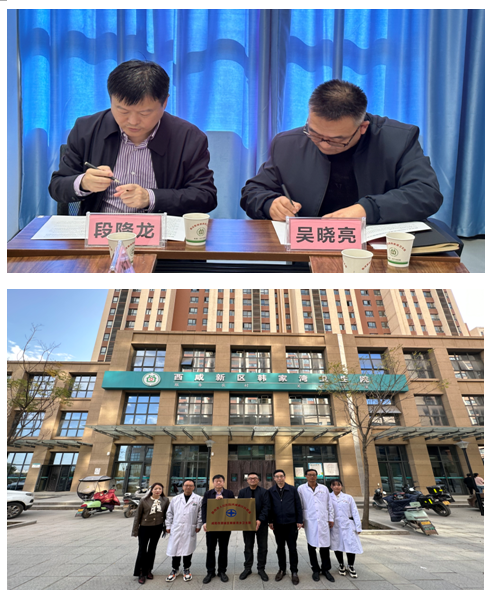 11月1日,段降龙副院长带领业务管理部刘鹏副处长、姬新才主任医师、王小娟护士长、信息处石颢梓与西咸新区太平中心卫生院、北杜卫生院、高庄卫生院、周陵卫生院、底张卫生院、韩家湾卫生院举行了医联体签约及授牌仪式。