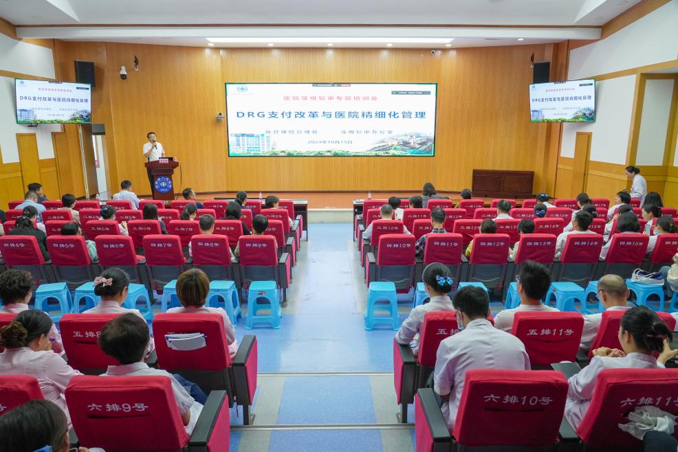 随着国家医保局DRG2.0版分组方案的出台,“驾照式记分”医保支付资格管理制度的推行,以及医保大数据实时动态智能化监管的运用,为深入学习掌握医保支付改革相关政策,进一步推动医院精细化管理和高质量发展,结合医院等级复审工作要求,10月15日下午,医院邀请河南省人民医院申志强副院长来院开展医保支付方式改革培训讲座。培训会由马富春副院长主持,全院行政部门负责人、临床医技科室主任、业务副主任、护士长,DRG专管员、等级复审联络员等共200余人参加。