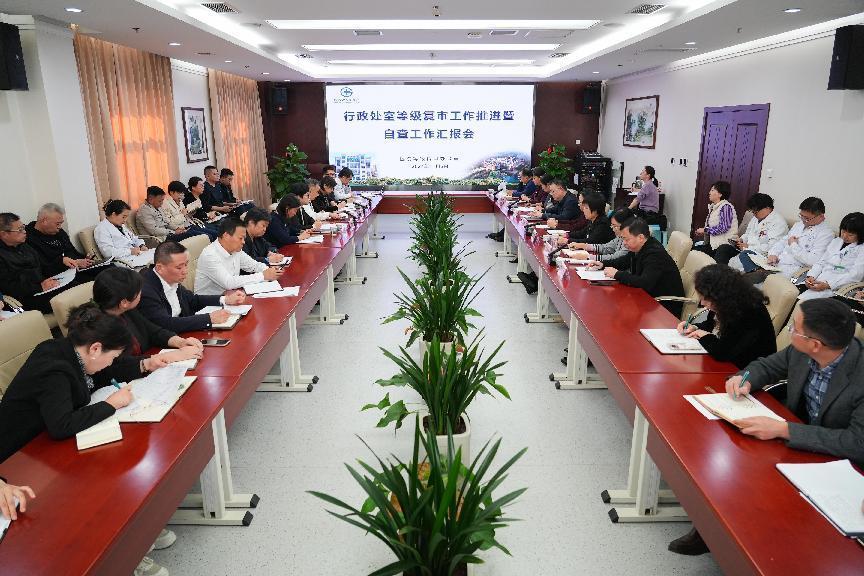 近日,为进一步推进等级复审工作有序进行,全面推动医院内部管理提升与医疗质量安全优化,行政处室率先垂范,圆满完成了等级复审的首次自查工作。11月5日下午,医院召开行政处室等级复审工作推进暨自查工作汇报会,王建华副院长、各行政处室正副处长(主任)、总支书记、正副科长、处长助理及等级复审联络员参会。